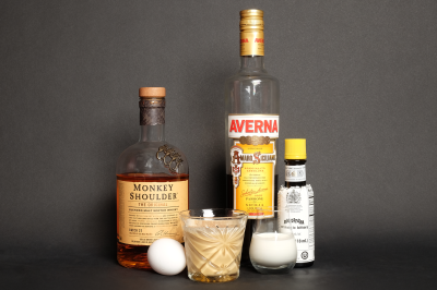 Apple brandy, Amaro di Angostura, Demerara syrup…