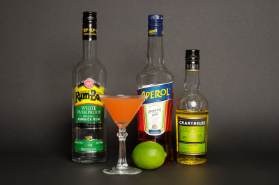 Light overproof rum, Yellow Chartreuse, Aperol…