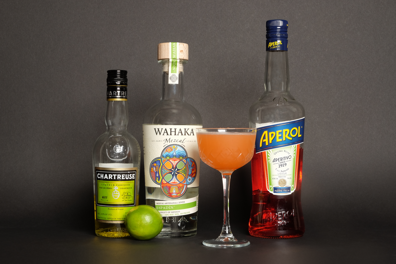 This drink’s creator calls it the “bastard love child of a classic Last Word and [Sam Ross’s] Paper Plane conceived in the mountains of Oaxaca.” That about sums it up. Like the others, this is an equal parts drink. It borrows a little from one and a little from the other. The result is an extremely well balanced and tasty riff that has each ingredient being immediately identifiable without them getting muddled and confused.