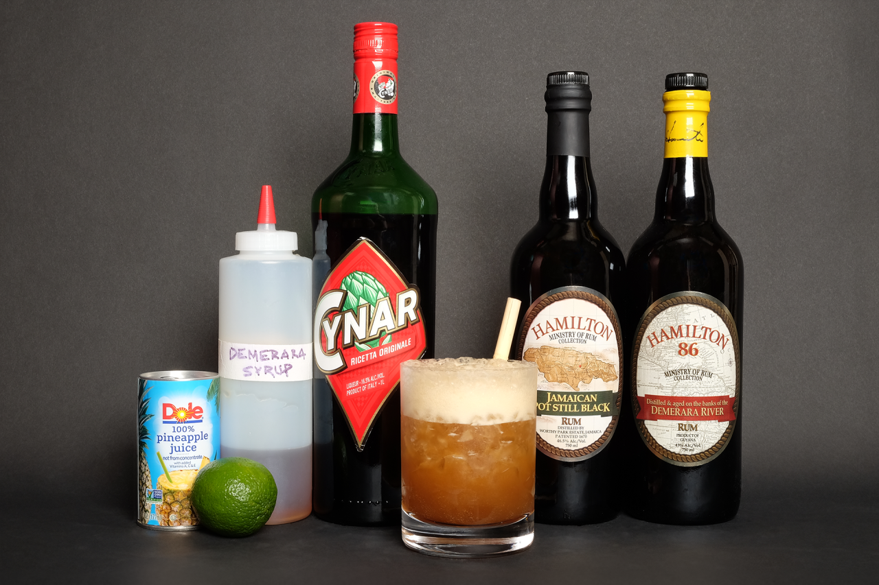 Here I’ve switched up the spec, changing the rums and subbing Cynar in place of the Campari.